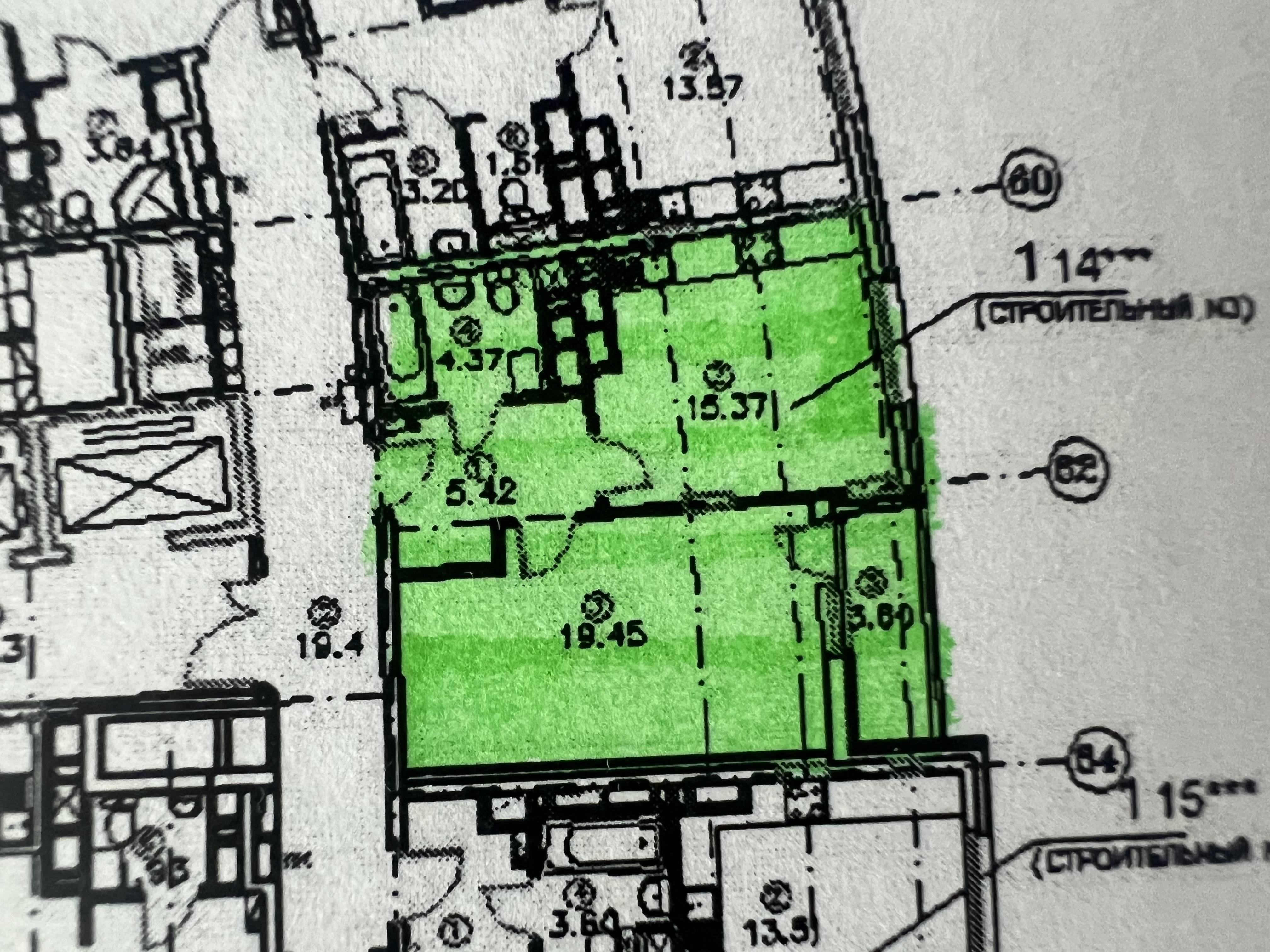Жилая площадь 19.46 кв.м, кухня 15.37 кв.м, ремонта нет. Раздельных санузлов - 1, совмещенных санузлов - 1, балконов - нет, лоджий - 1, окна выходят во двор и на улицу.
